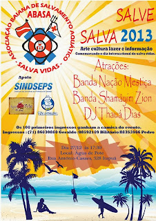 Já no final da tarde, a categoria irá continuar as comemorações com o “Salve Salva 2013”. Promovido pela Associação Baiana de Salvamento Aquático (Abasa) em parceria com o Sindicato dos Servidores da Prefeitura de Salvador (Sindseps), o evento acontecerá a partir das 17h30, na Casa de Shows Água de Pote, localizada no bairro de Itapuã.